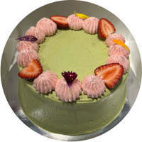Vibrant and refreshing combo, perfect for the warm spring. A Matcha chiffon with fresh whipped match cream. Housemade Strawberry sauce, topped with fresh Strawberries.
